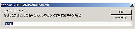 ディレクトリを作成する場合には「ディレクトリ作成」をクリックします。スクリプト プロンプトが表示されたならば、ディレクトリ名を半角英数字で記入します。